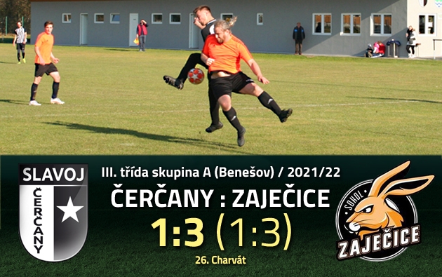 Vzhledem k tomu, že obdržená branka pro nás nebyla dostatečným varováním, přišel va 44. minutě další trest. Po přímém kopu hostů se míč dostal na malé vápno k neobsazenému útočníkovi Zaječic, který nadvakrát překonal Petra Burceva. Tomu nepomohl ani první skvělý zákrok a na dorážku byl již krátký (1:3). Obrana Slavoje jakoby opět ani neexistovala.